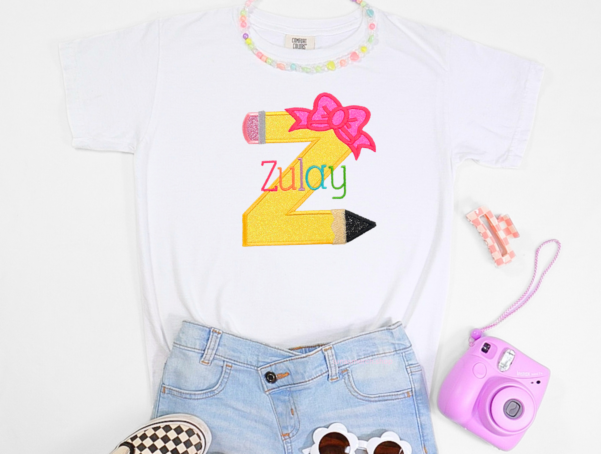The design is embroidered directly into the shirt. We use high quality 100% ring spun cotton shirts for our embroidery. Our kids shirts are the idea of comfort and style. The material is a thick cotton. This creates a plush, soft and comfy feeling when wearing.