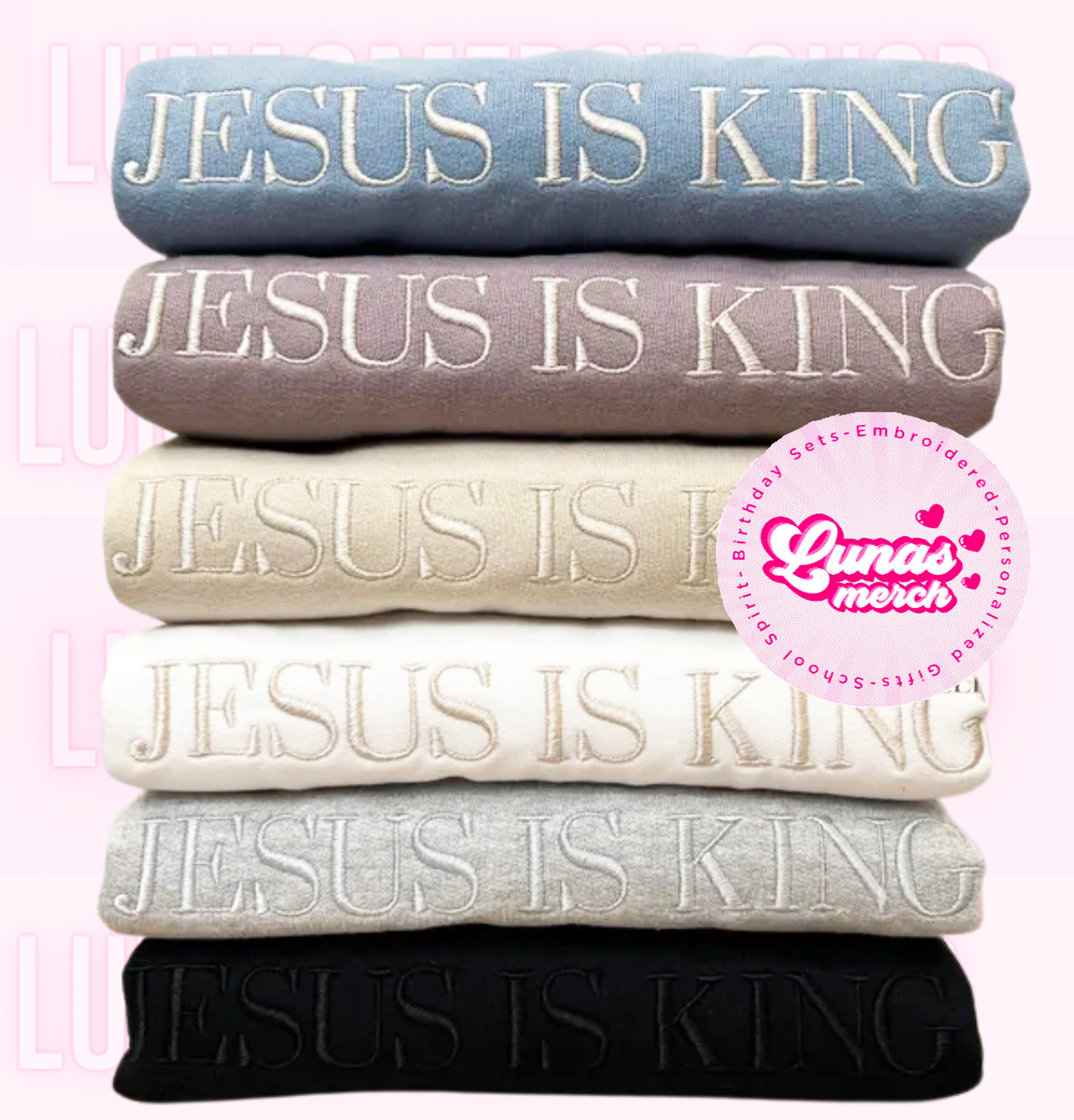 Proclaim your faith in style with our Jesus is King embroidered sweatshirt. Show off your devotion and stay cozy at the same time. Praise the Lord, and stay fashion-forward!