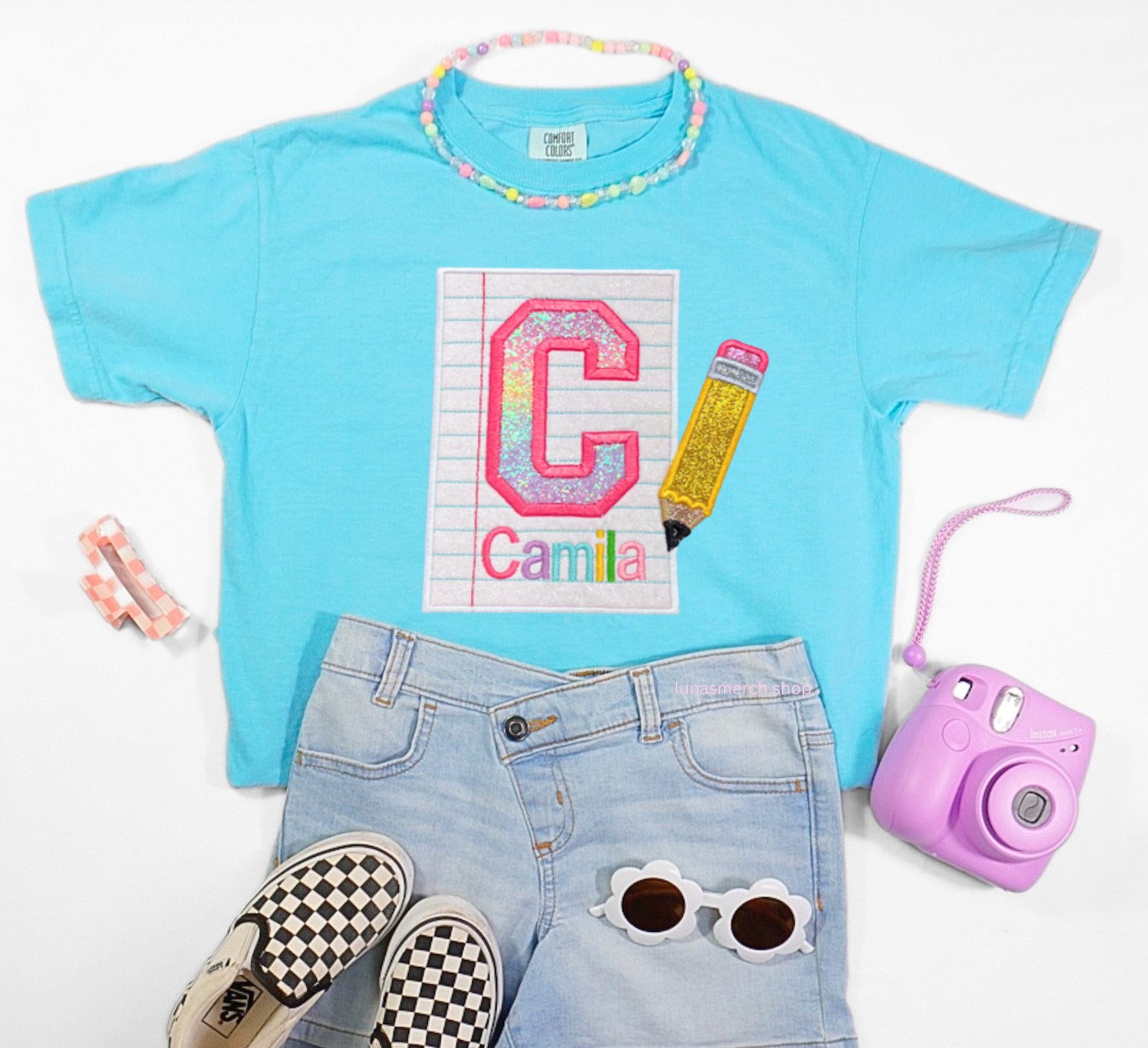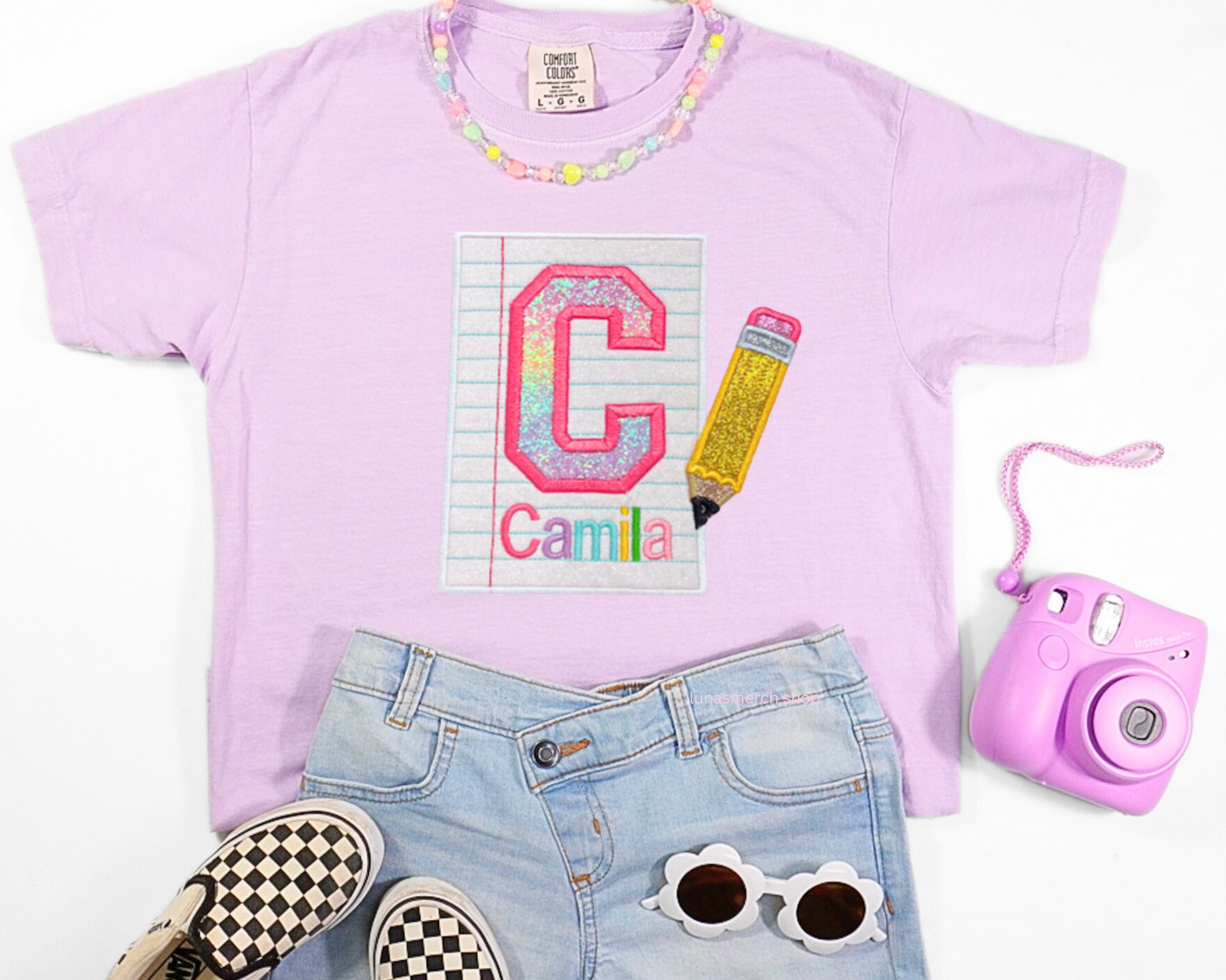 Glitter Pencil & Paper Personalized Name Embroidered Shirt
