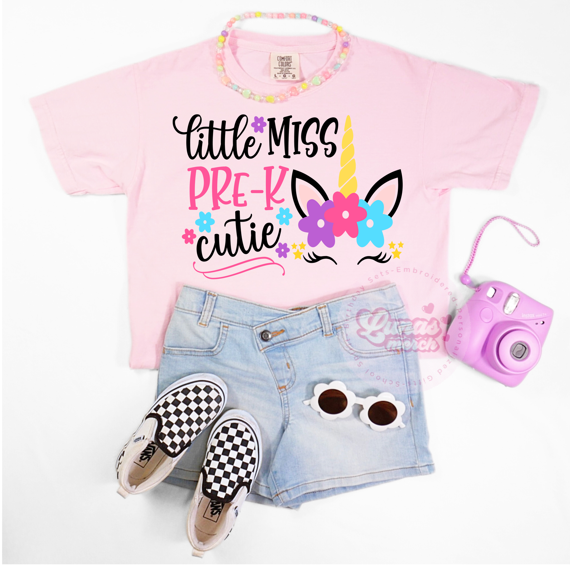 Little Miss Pre- K Cutie Back to School Unicorn Shirt