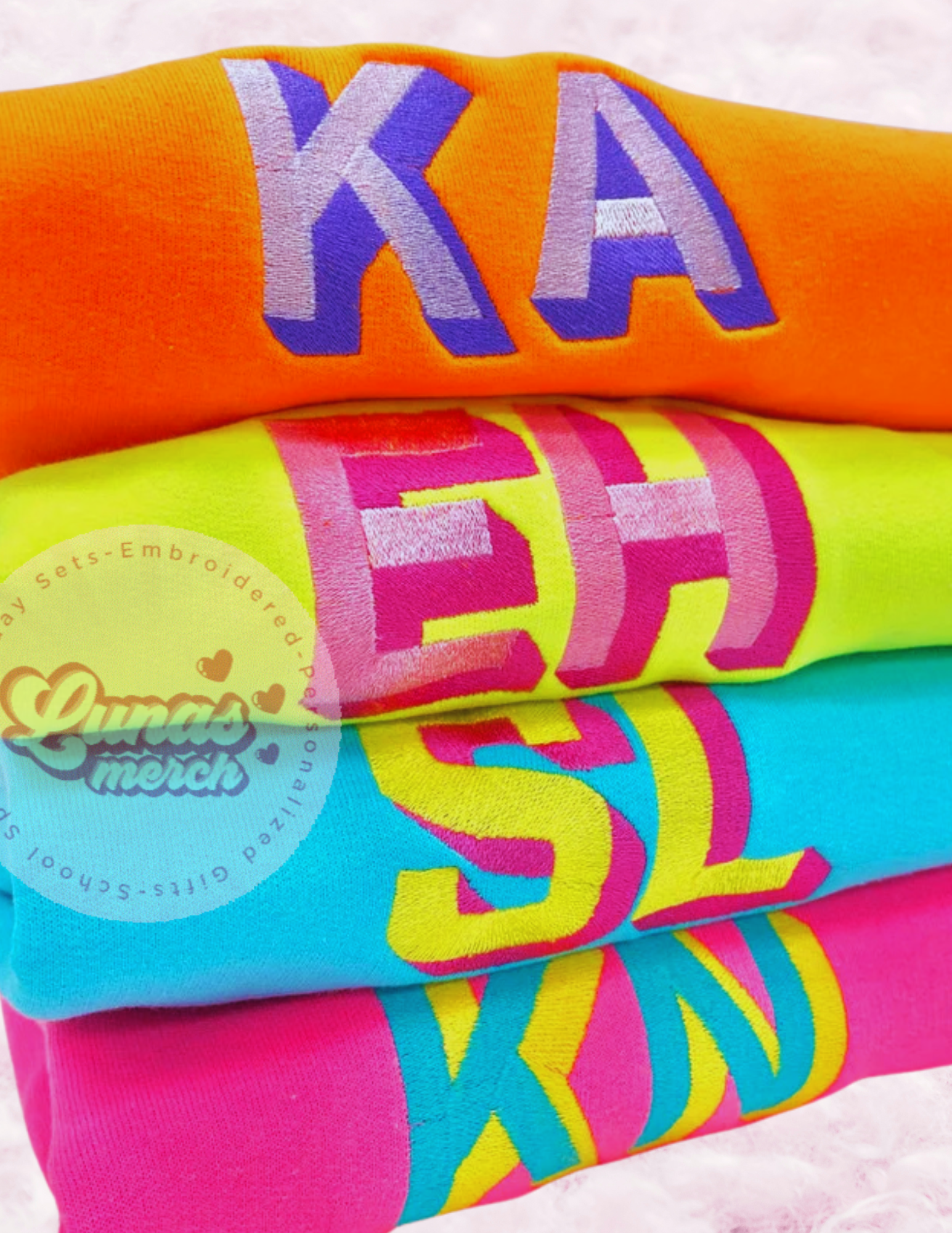 Enter the name you want in the forefront First with the thread color you want it. Secondly Add the color you want in the background (shadow)