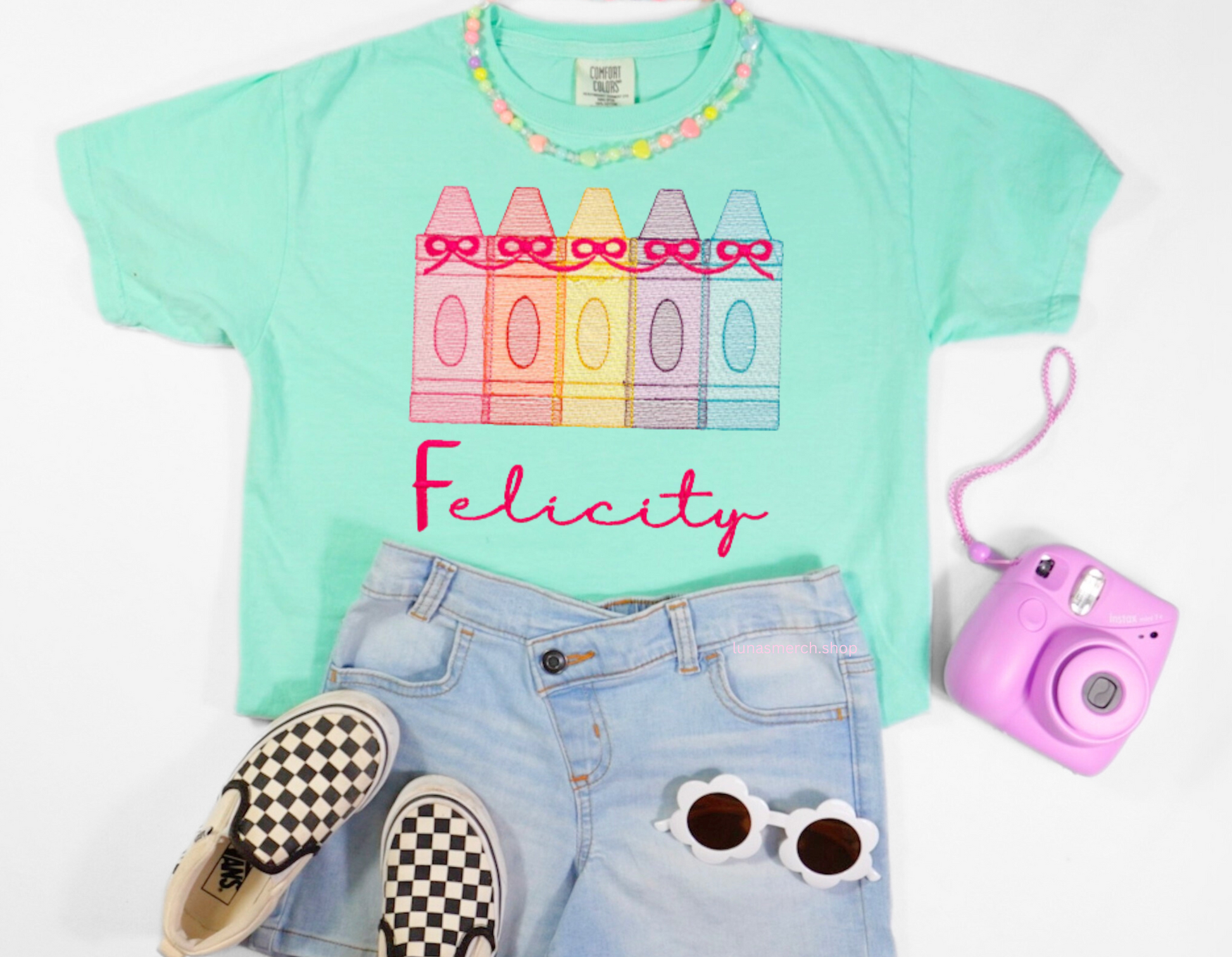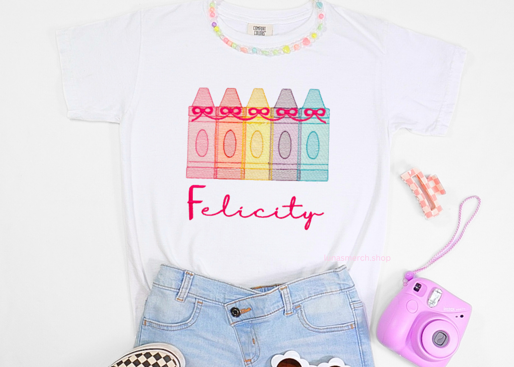 The design is embroidered directly into the shirt. We use high quality 100% ring spun cotton shirts for our embroidery. Our kids shirts are the idea of comfort and style. The material is a thick cotton. This creates a plush, soft and comfy feeling when wearing.